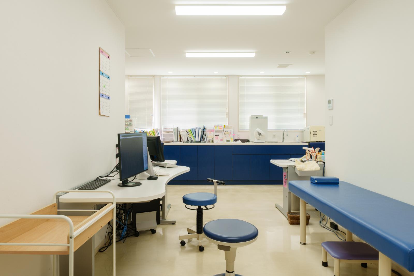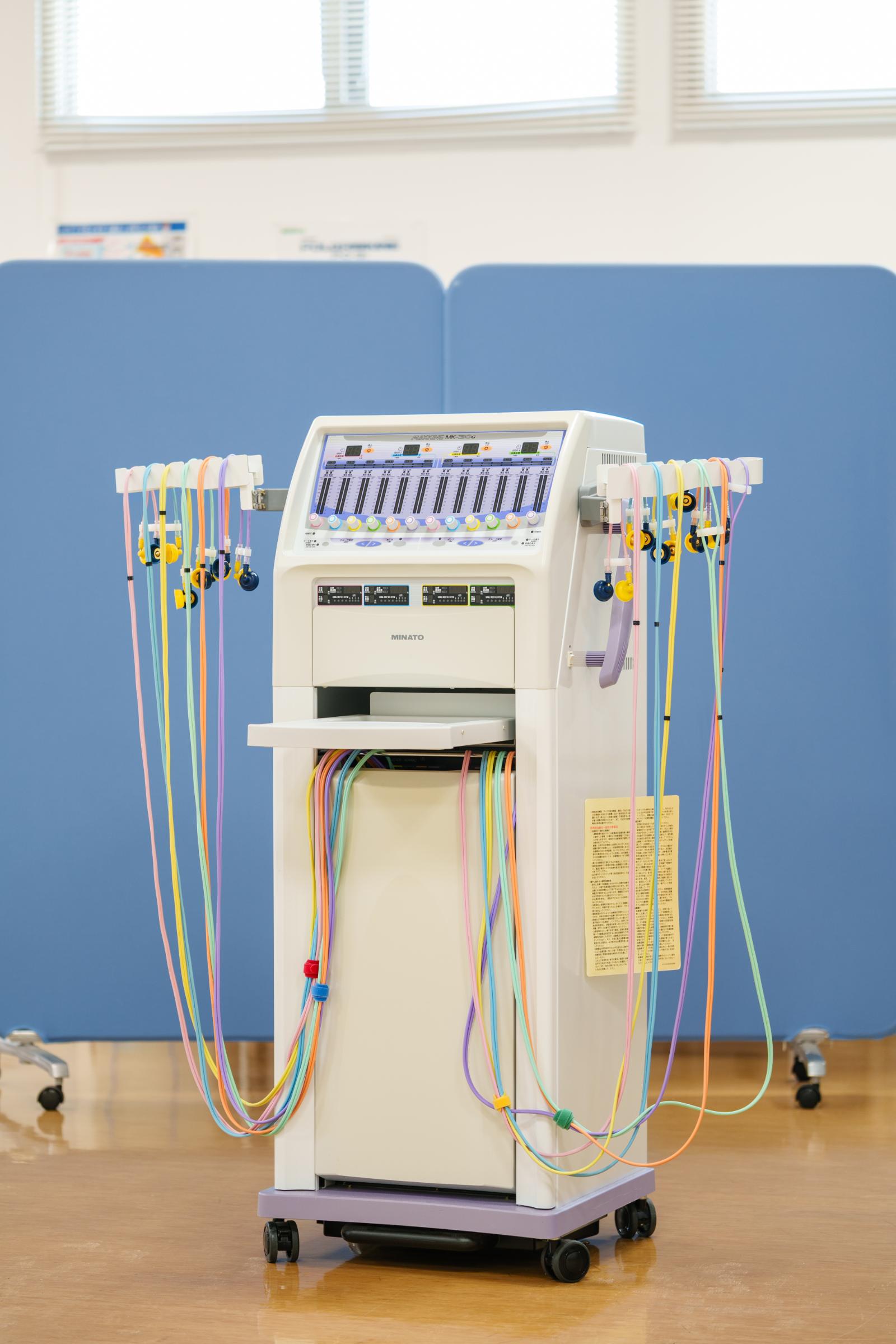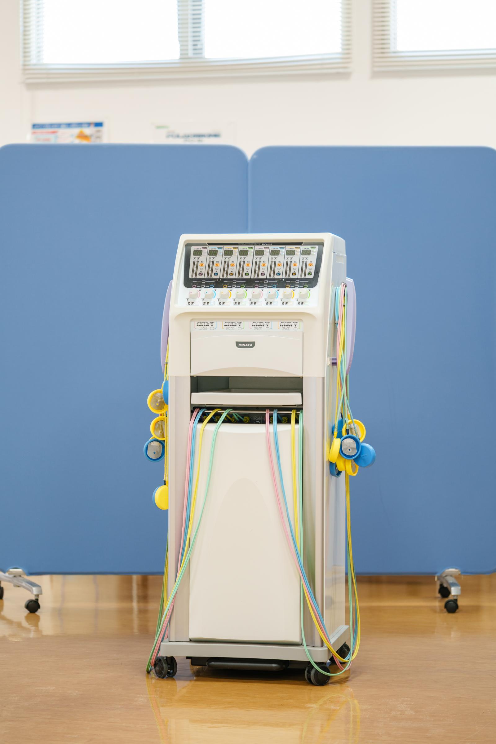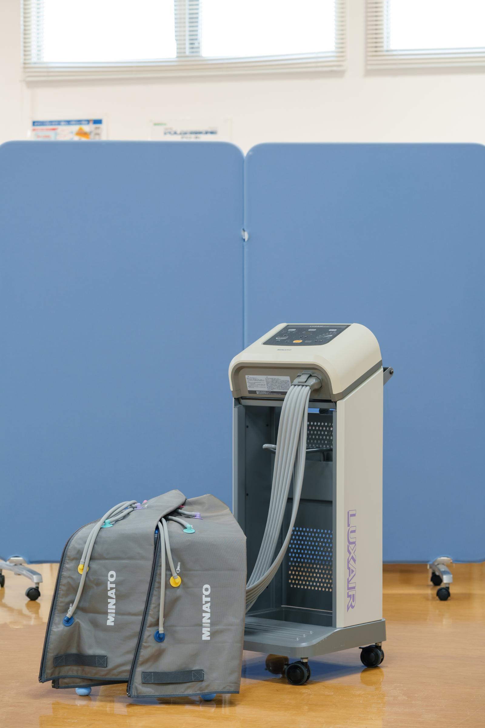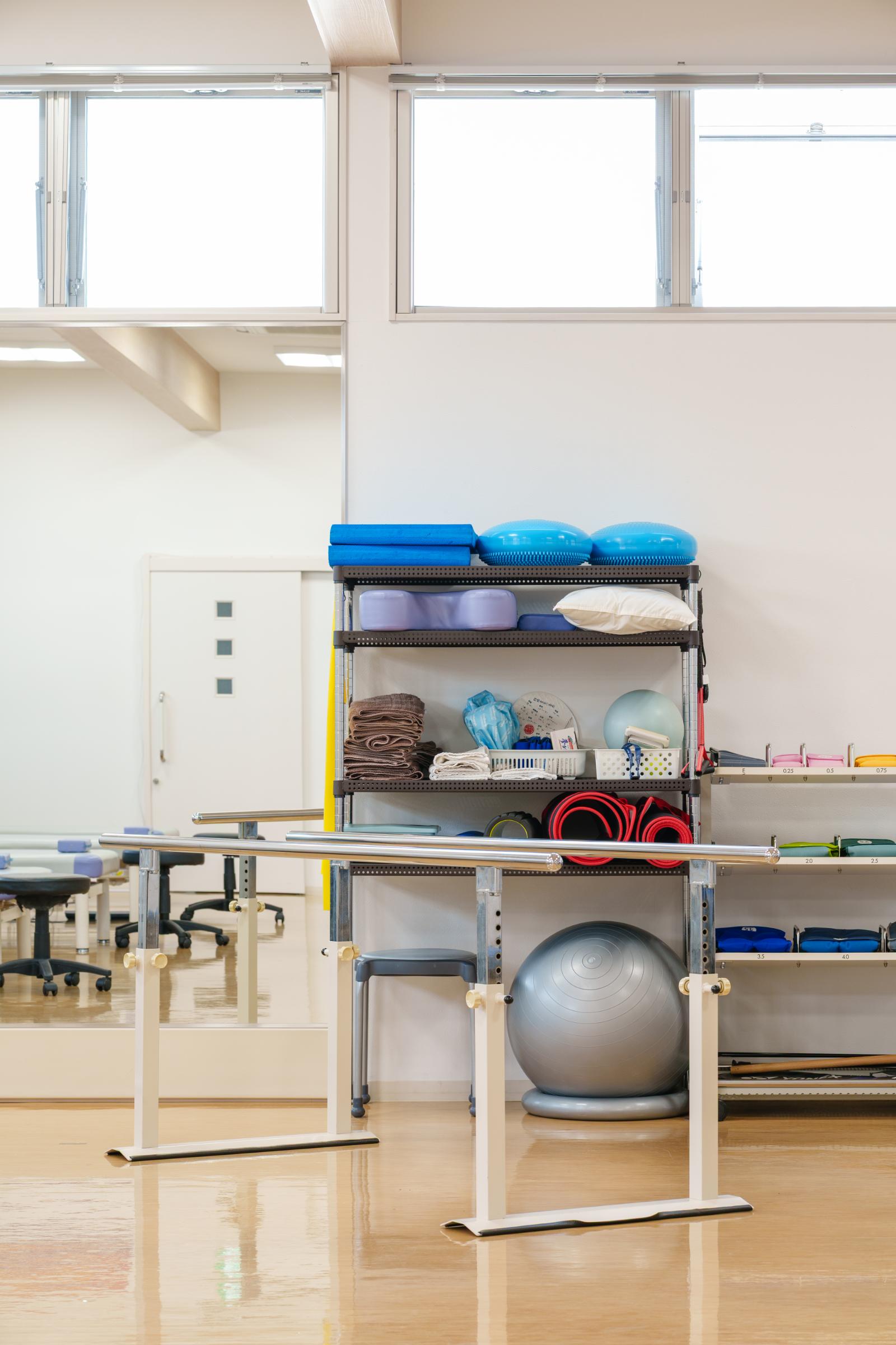 広いリハ室で各種電気治療、全身マッサージ効果のあるウォーターベッド、個別で行う運動器リハビリテーションを行います。