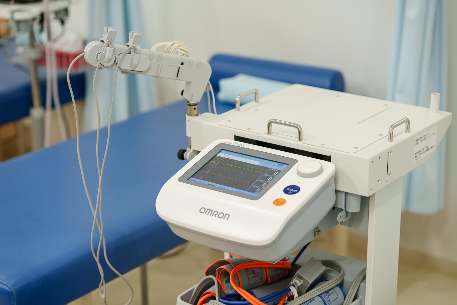 下肢の痛み、冷感等がある場合、整形外科疾患ではなく血管の狭窄による疾患の可能性があります。足の冷感を伴う痛み、痺れはこの装置で血管のつまりを評価します。気になる方はスタッフにお問い合わせください。